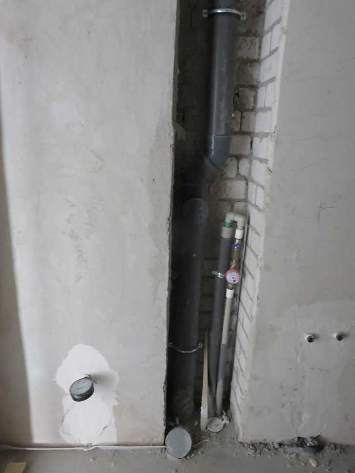 не хочется тянуть канализацию и воду на противоположную стену. хорошо хоть стояк в стену углублён. зашить эту нишу , лючок поставить там, где счётчик на воду.