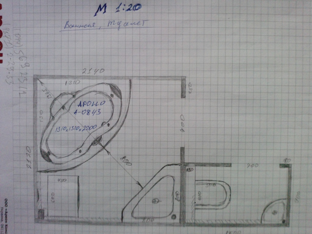 я месяца 2 рисовал как лучше сделать в итоге все сделал угловое, вместо ванны угловой гидробокс 1300х1300, рядом стиралка, напротив в углу умывальник со шкафчиком и зеркалом