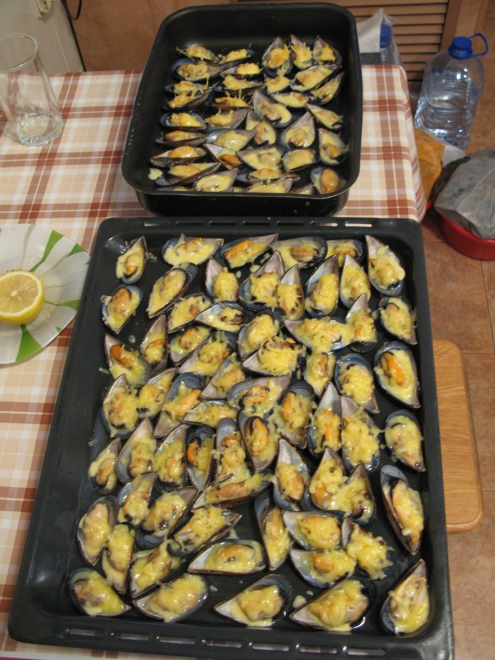 Нашёл старые фото. Надо бы заказать. 150 руб. за 1 кг. живой мидии. Наша, черноморская. Кусочек сыра пармезан и сливочного масла. 3 минуты в духовке при 180 гр. и будет вам счастье со стаканчиком сухого белого. class::
