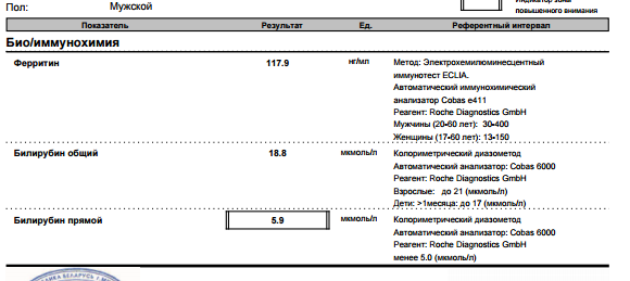 Сдал на ферритин,заодно и билирубины. Билирубин за неделю немного пошел вниз. Пил только отвар шиповника.