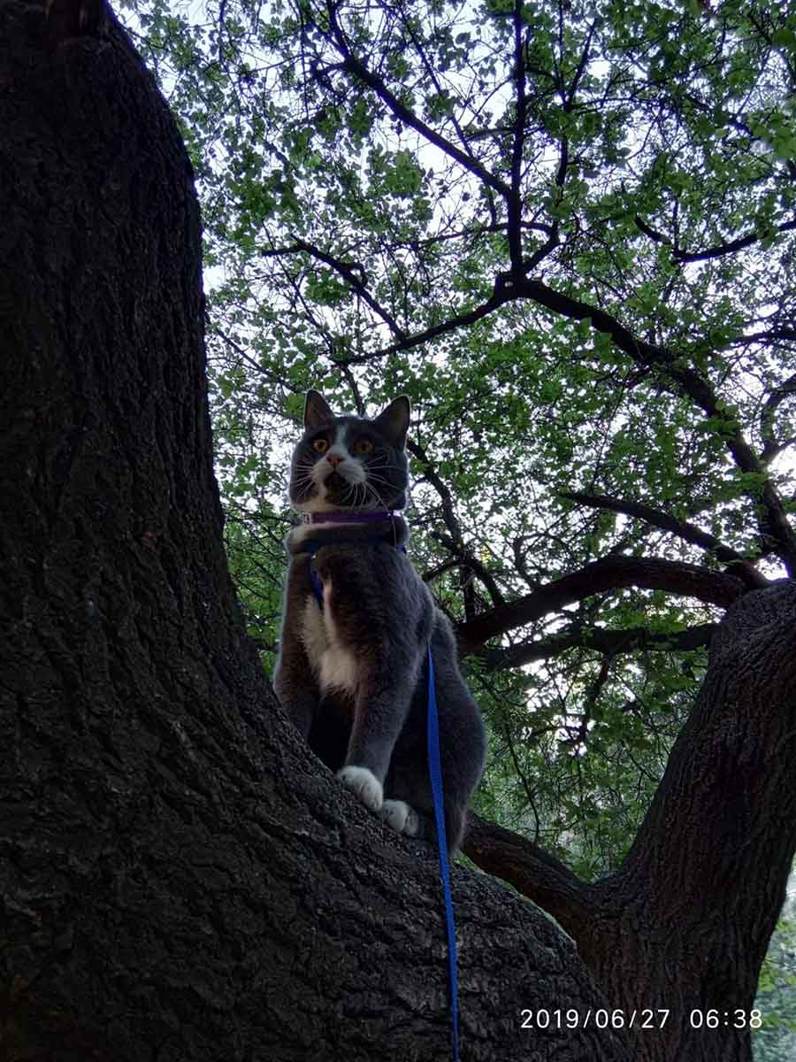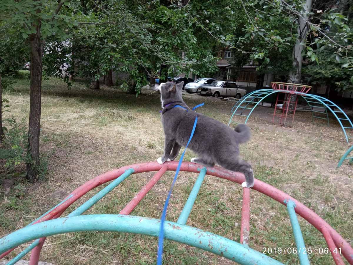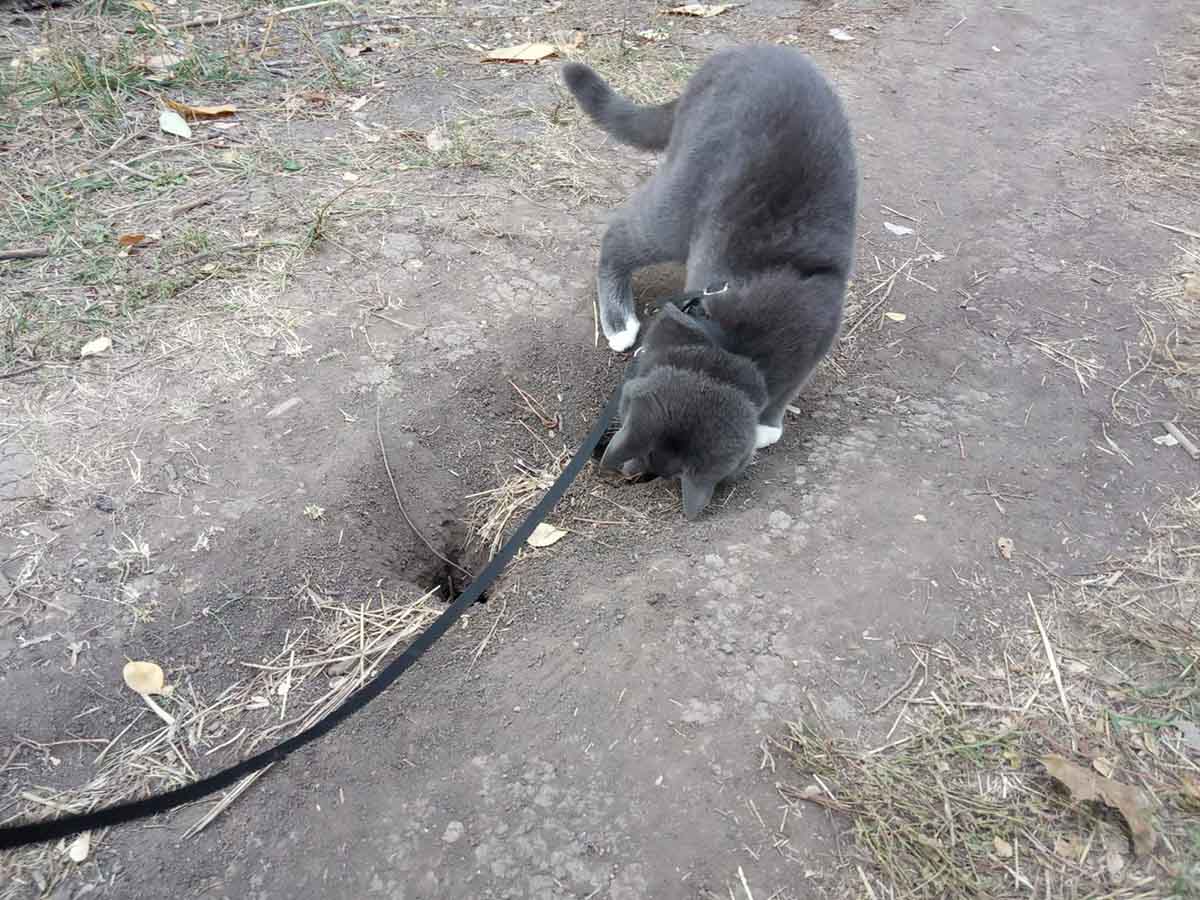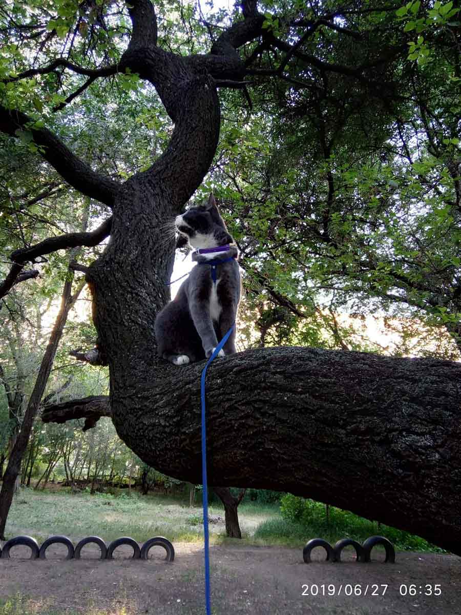 Шустрый он у вас! А вот у мамы кошка ходит за хозяйкой по огороду,как на веревочке))