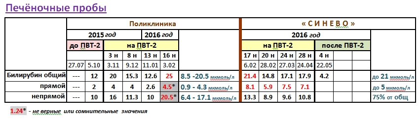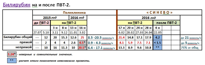 Вот такой билирубин был: до, на и после ПВТ-1; на и после ПВТ-2 ⇒ Печёночные пробы: до, на и после ПВТ-1; на и после ПВТ-2.