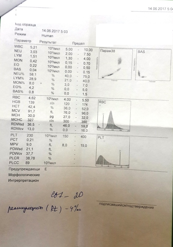 Попала на прием к приезжему гематологу?=терапевту. Сказал: анализы хоть в космос лети. А моноциты... нужно разбираться. Лабы, в которых моноциты повышены, плохие, к ним доверия нет. Нужно сдать в их медцентре ( дежавю). или в Инвитро. Ну ладно, всего на 280 р назначил. Говорит сам мазок на стекле посмотрит, может в тех лабах вместо моноцитов считают другие клетки. Сказал, что если моноциты повышены в процентах, то должно быть повышено и их абсолютное число. При гепсе моноциты не повышаются. Что-то другое. Про хелиобактерию сказал лечить обязательно, если не хочу язву. Посоветовал пройти эластографию через полгода после первой, посмотреть динамику. Сказал, что я не имела право!!! лечиться самостоятельно. (я озвучила вместо викейры совальди и даклинзу, про индию молчу) . Сказал, что заразили гепатитом скорее всего в 88 году при полостной операции. А почему не обнаруживался? Да его просто никто и не искал. Удивился, что никто из врачей, до ревматолога, не обращал внимания на повышенные алт и аст. И, самое главное, что вирусом гепатита С заражены все люди, как и вирусом герпеса, а вот когда иммунитет ослабевает, то вирус и просыпается. Гепатит С не вылечивается, я его только загоняю в дальние уголки моего организма.