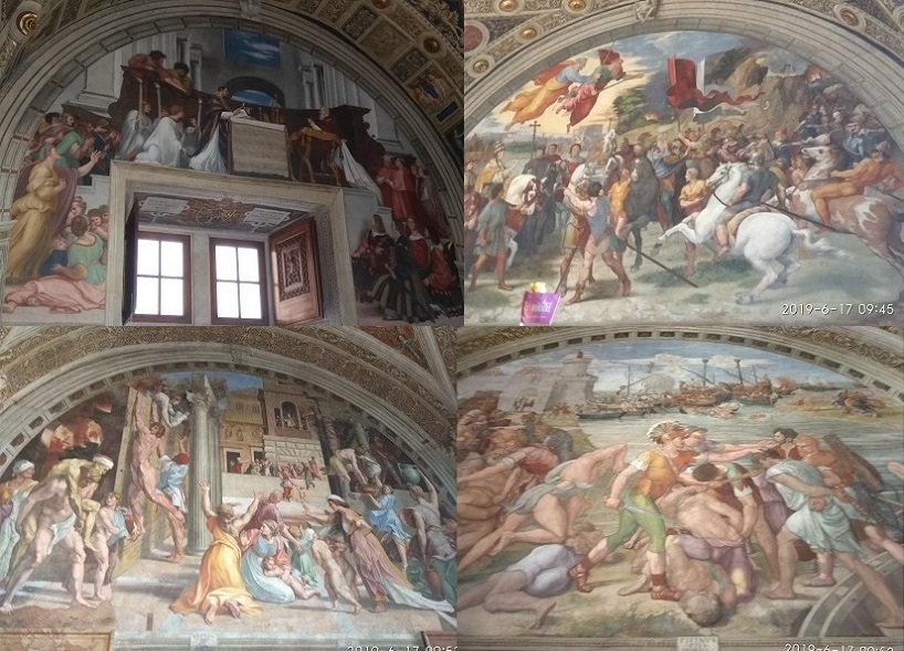 Фреска Битва при Остии написана учениками по эскизам мастера. Изображена сцена