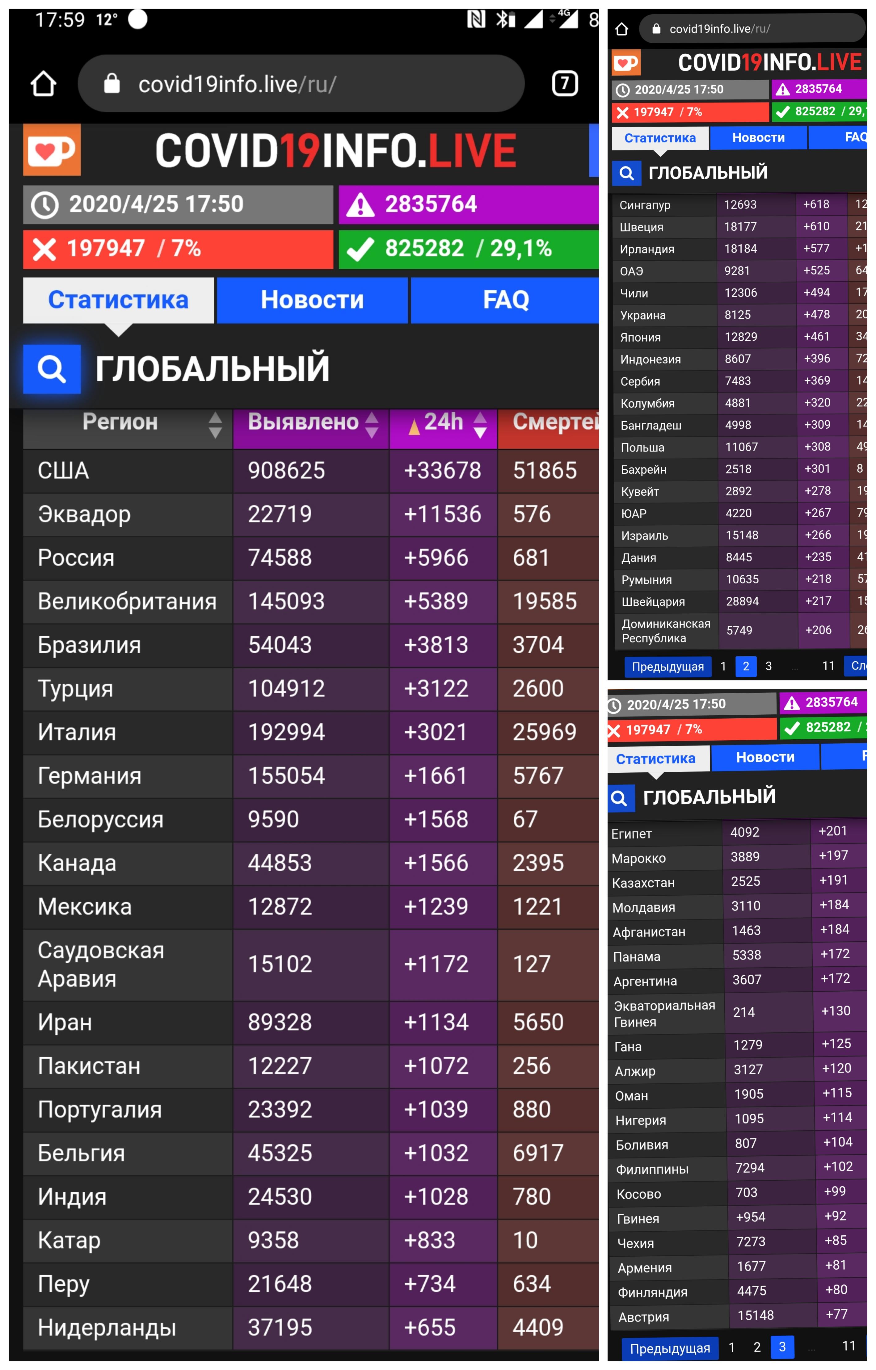 3. по РБ на 18 месте по росту, пошла по шведскому пути, показатели смертности кажутся враньем и по статистике и по тем данным что дают форумчане, Украина подходит к порогу 500 в день, идет по графику РФ с отставанием 7-10 дней, предположительно на пике может иметь 1.5-2 тыс в день, Казахстан и Молдова подходят к 200 в день, что призакрытости городов в кз очень непонятно..