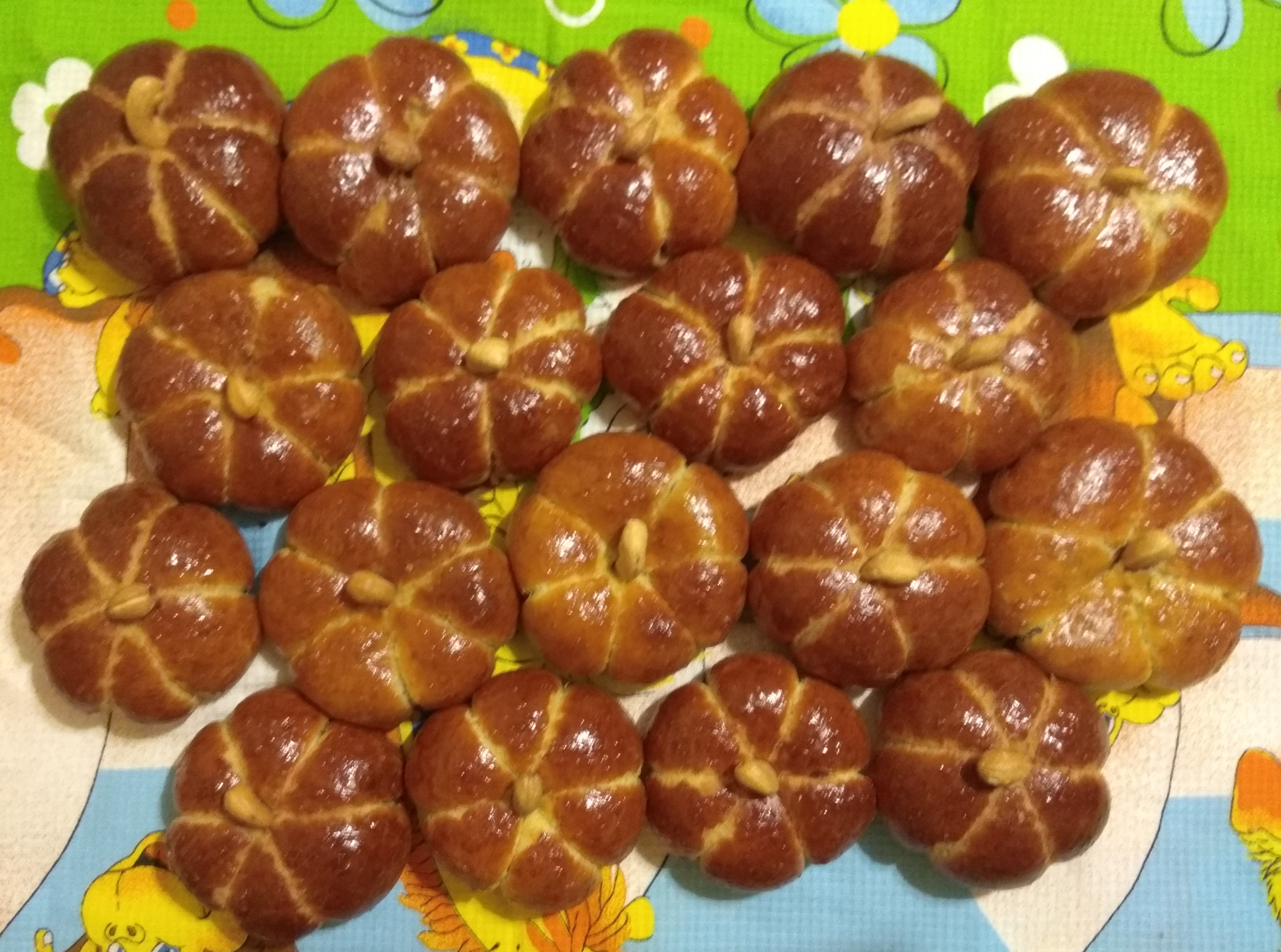 Начинку сделала тыкву с изюмом, хвостики кэшью. Остальное то же, только в два раза больше. Еще не пробовала и не хочется пока - замаялась...