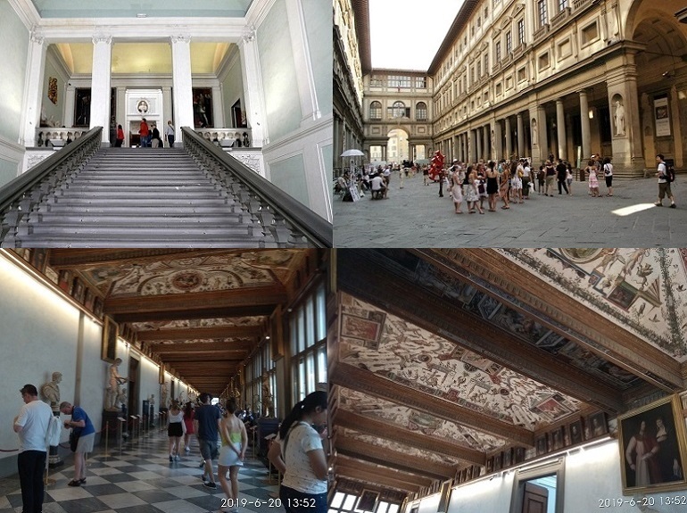 Piazzale degli Uffizi. С левой стороны залы галереи. В самом коридоре бюсты и