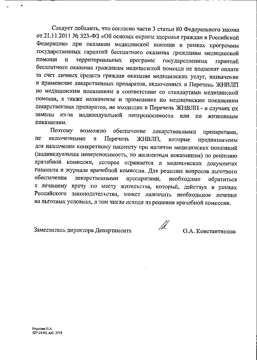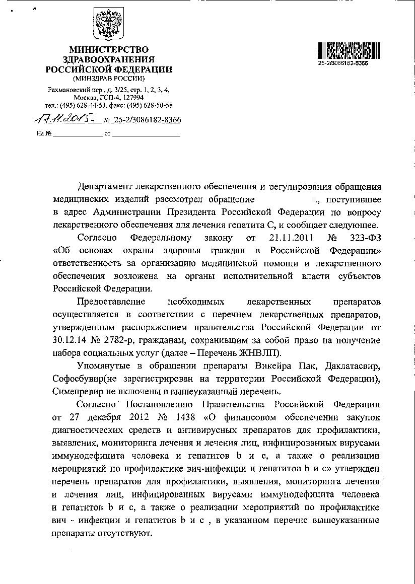 Re: Получен ответ из "Минздрава" РФ