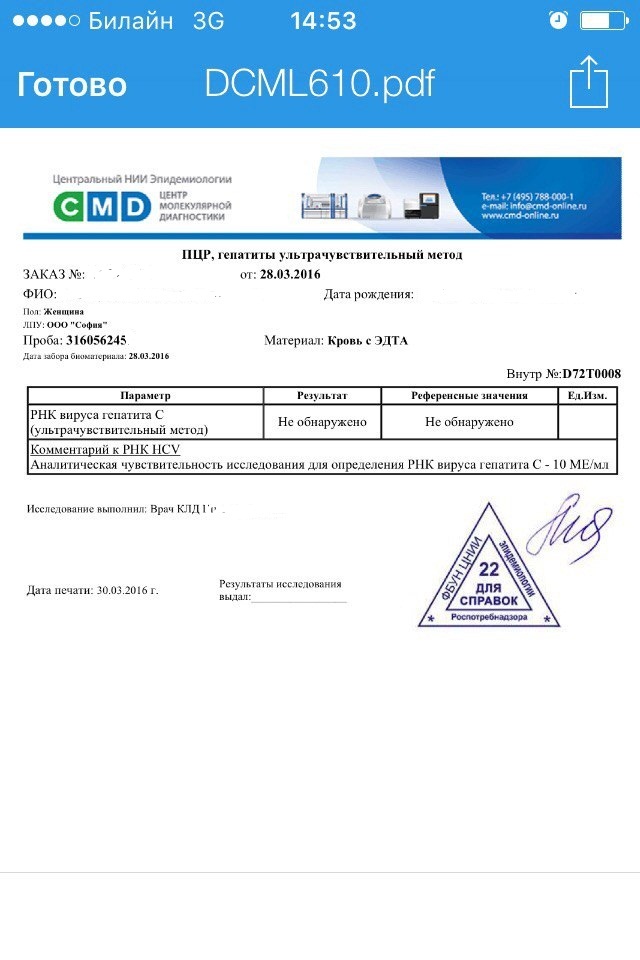 А вот и вчера 30 марта закончилась моя ПВТ. И как удачно вчера пришли результаты с ЦМД (чувст. 10/ме).