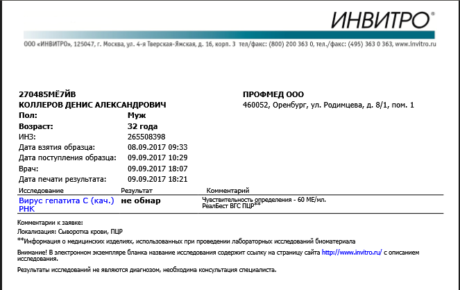 пцр кач. 8 месяцев не обнаружено 60МЕ/мл.