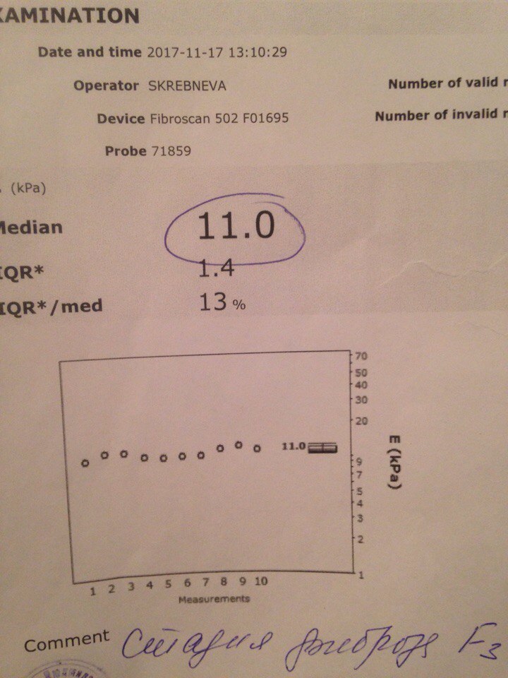 Фиброскан через 8 недель ПВТ и диеты №5 - 5,6.