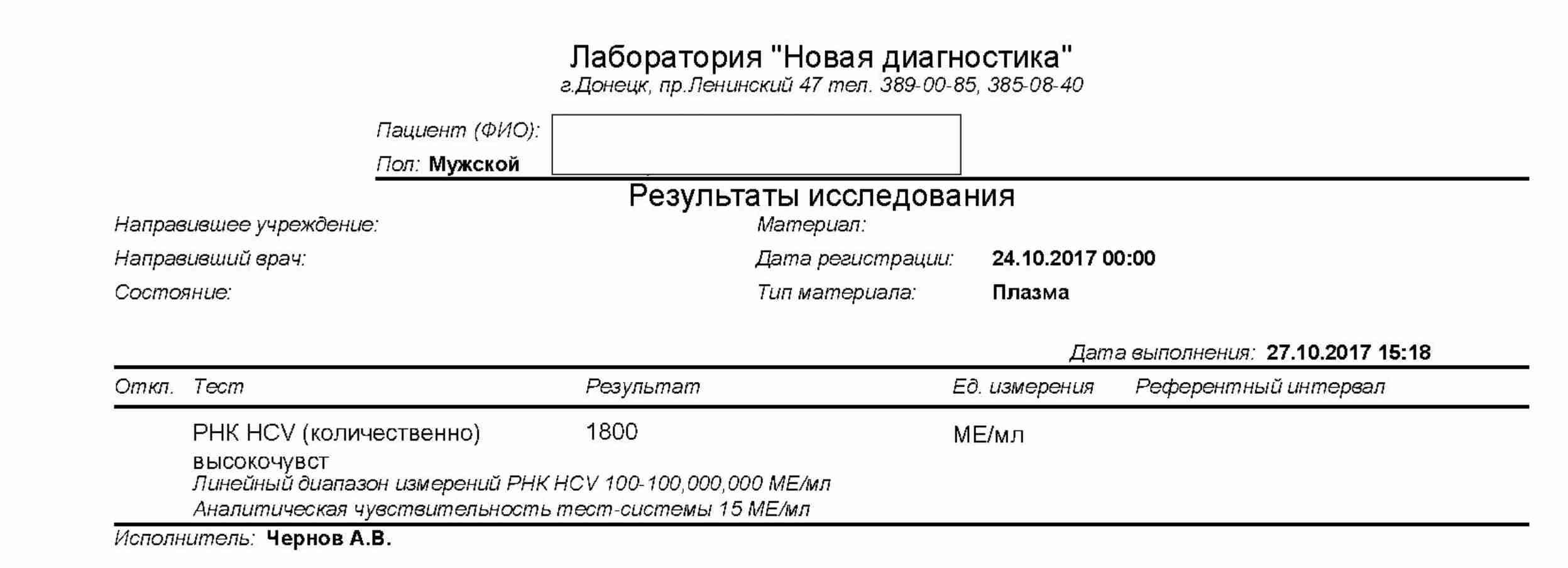 Фиброскан 20.0 кПа, фибротест0,87( F4), ActiTest 0.94 (A3), 1б, 2.3×10^4 Me.