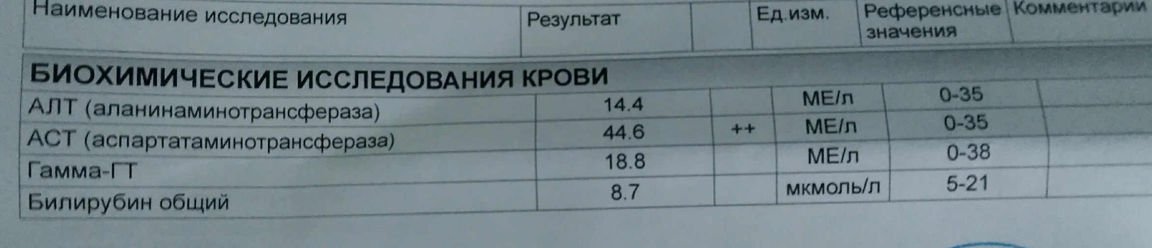 И вот по крови, АСТ повышен, ну и в общем какие-то есть отклонения небольшие.
