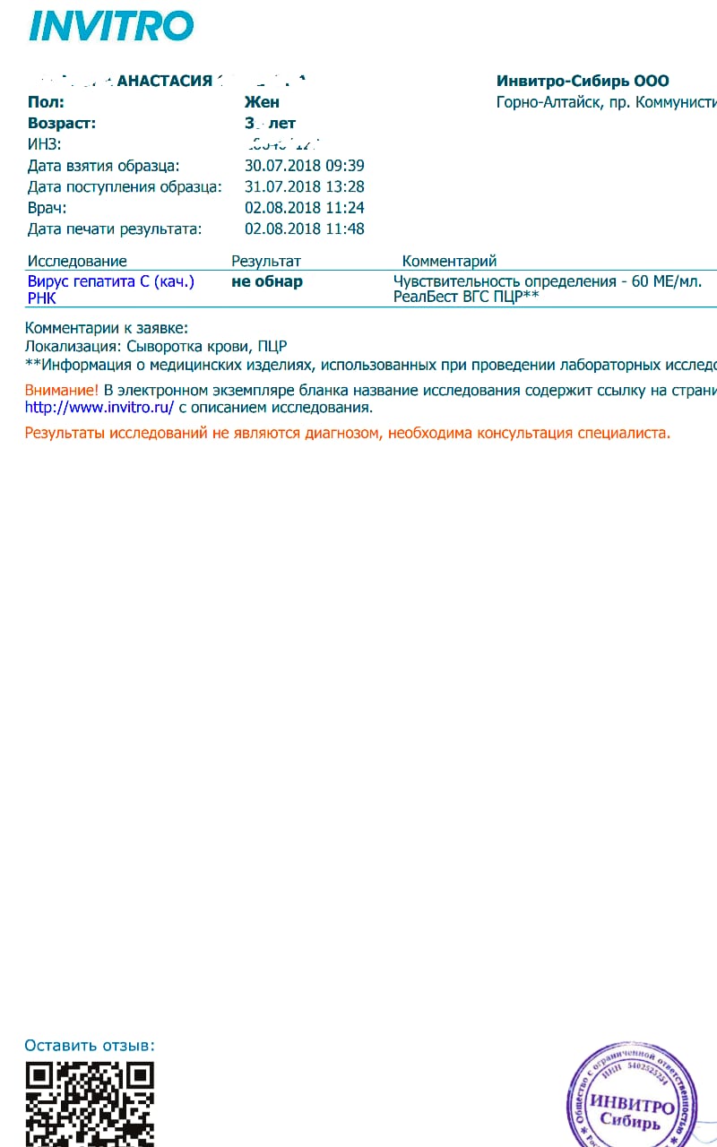 Сегодня пришёл первый минус. А также АЛТ И АСТ упали до нормы, и тромбы были 403, а стали 330!!