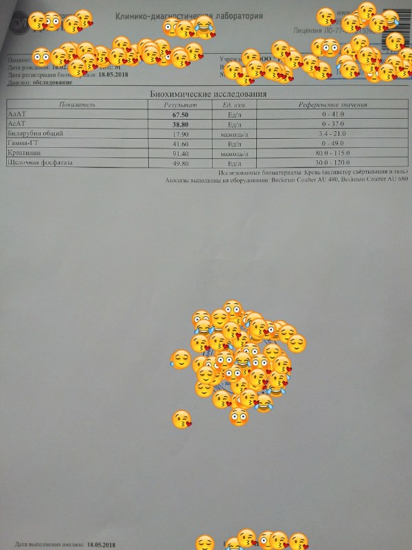 6. Биохимию (АЛТ,АСТ, Биллирубин, ГГТ, ЩФ, креатинин).