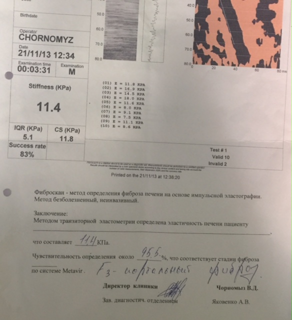 Решила проверить свою печень на Фиброскане. Это исследование проводил лично доктор Черномыз. Сказал, что очень удивился состоянию моей печени, провёл чуть ли не двойное по времени исследование.