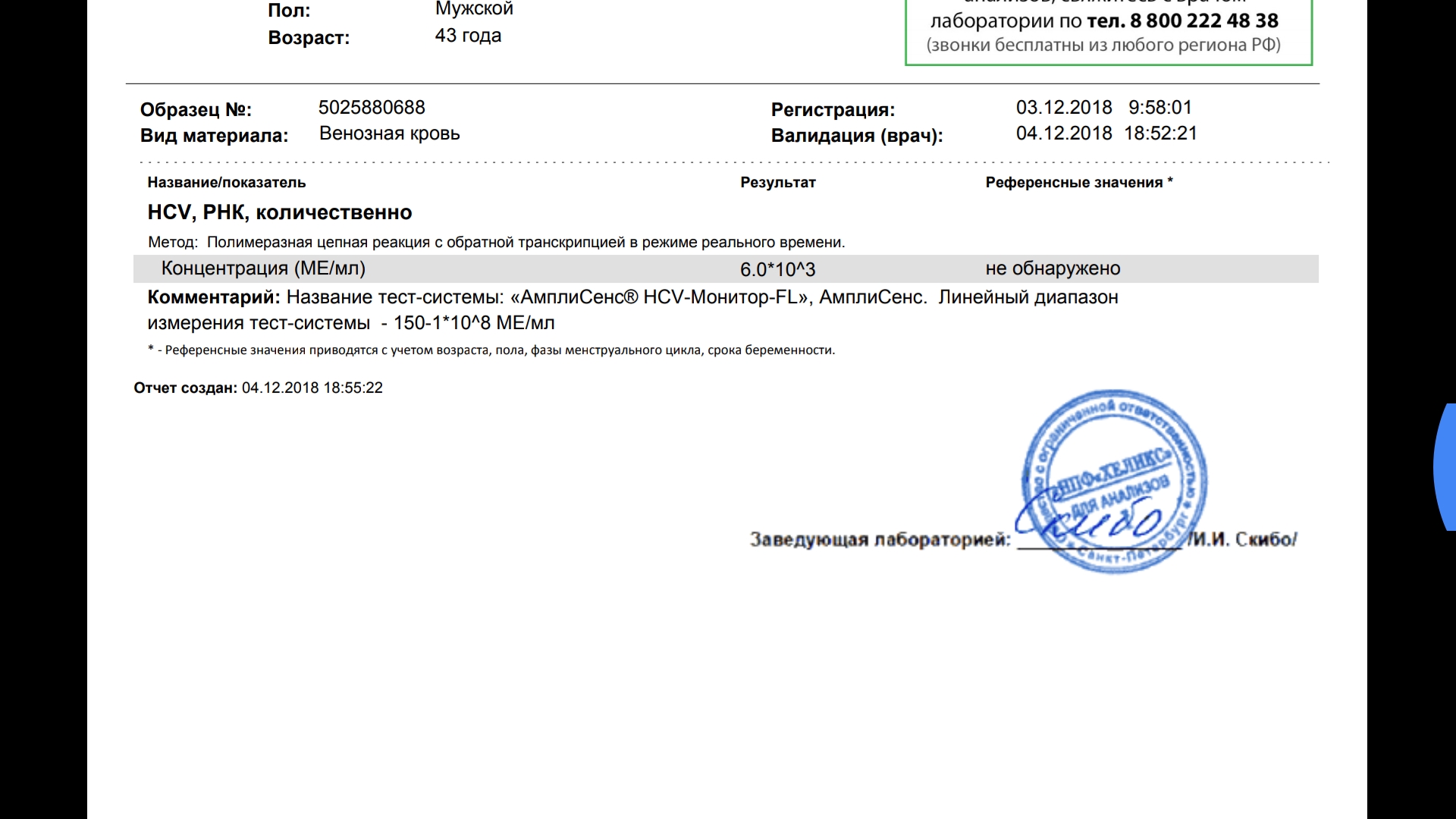 Старт терпии 03.12.2018, ПЦР перед началом лечения 6*10^3