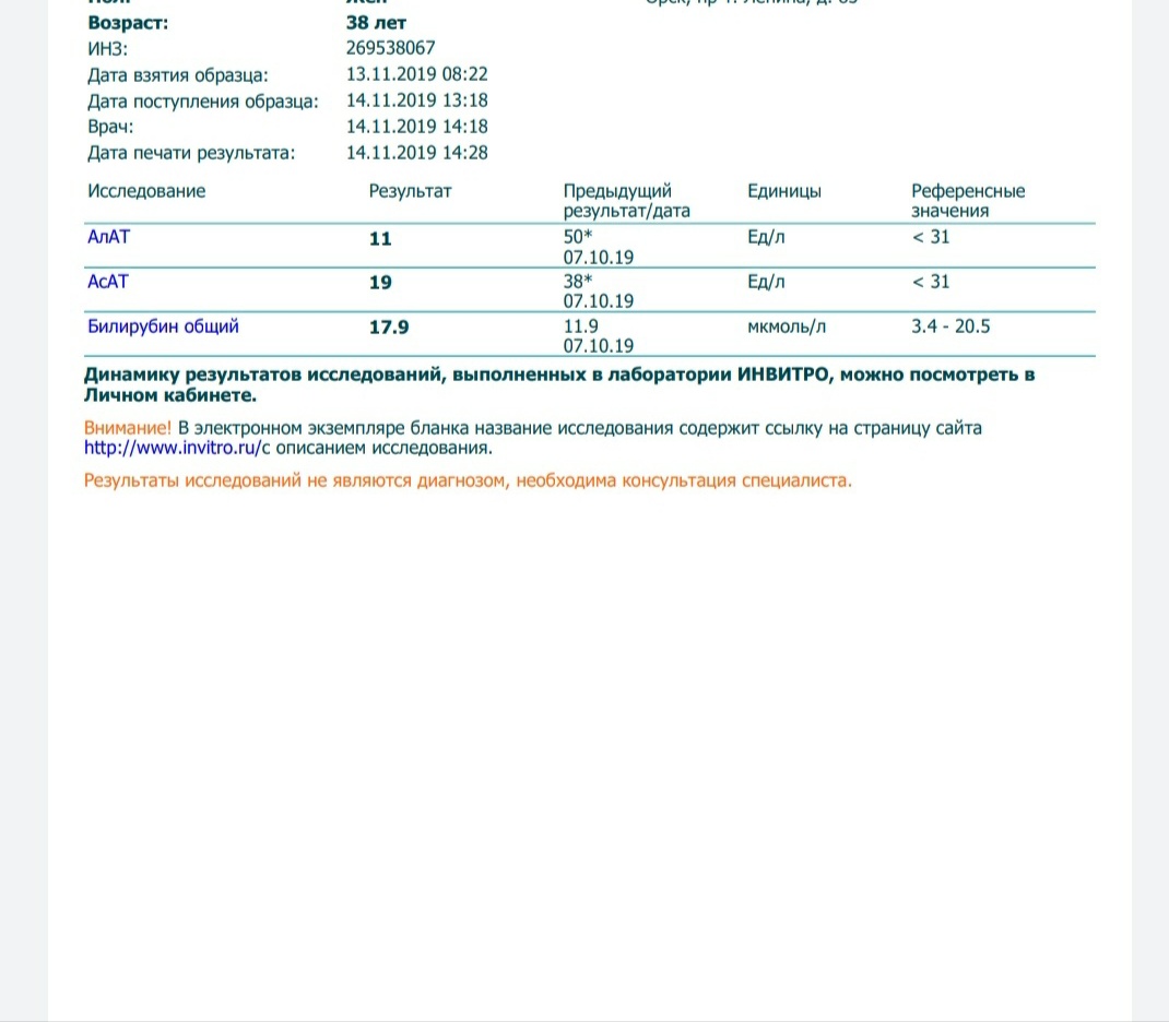 Старт 09.11.2019 ,Соф+вел ,3а ф0 ,вир.не определяла, АЛТ 58,1, АСТ 40,9