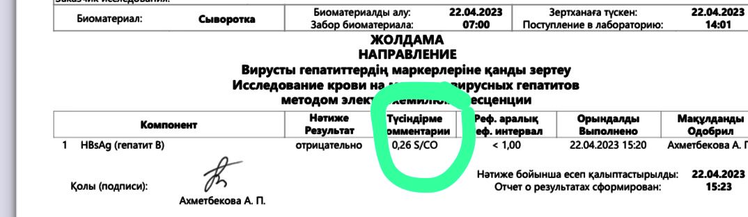 Подскажите пожалуйста что означает цифры в комментарии HBsAg отрицательно 0,26 S/CO? Очень надеюсь и молюсь, что доча не заразилась от меня(