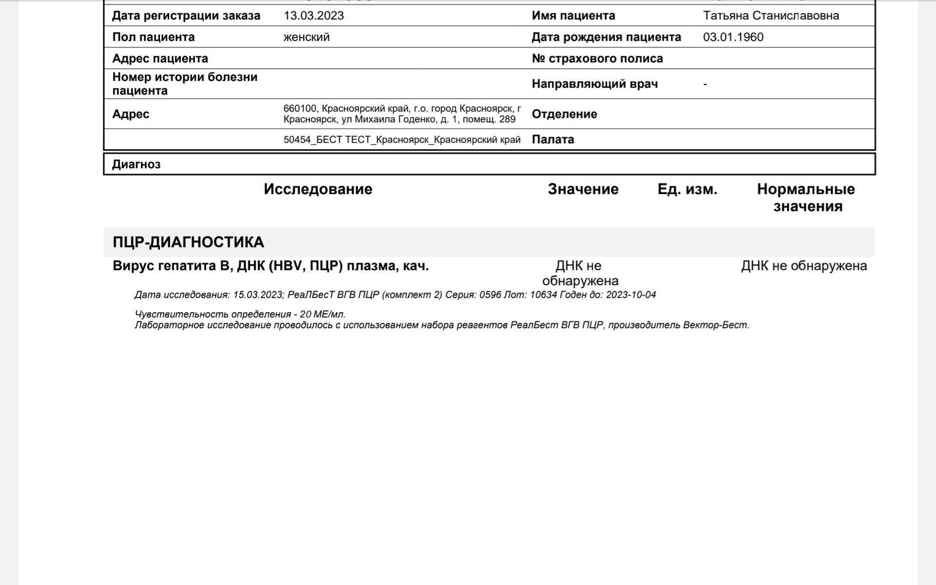 - Гепатит: Не обнаружен
