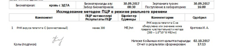 ГепС, генотип 1, ф-0 (5,8), в/н 1,0*10^7МЕ/мл от 16.02.2017г.
