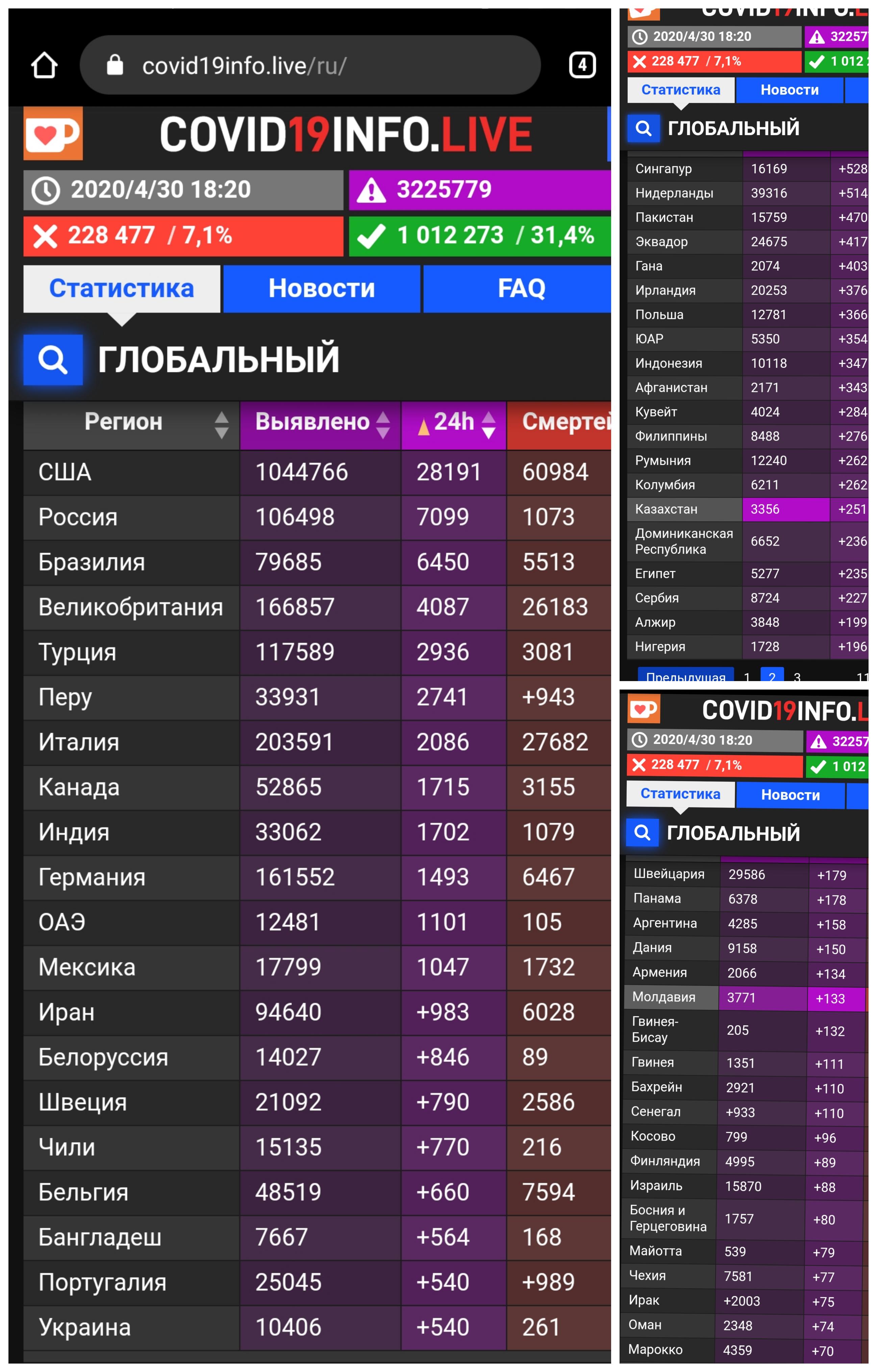 1. Очередные 82 тыс прироста умерло 10.3 тыс, более 30% США, вот уже 2 неделю у них идет все без снижения, какие еще меры по завершению карантина? Россия дала 8%, Бразилия, которая не смогла удержаться , 7%.