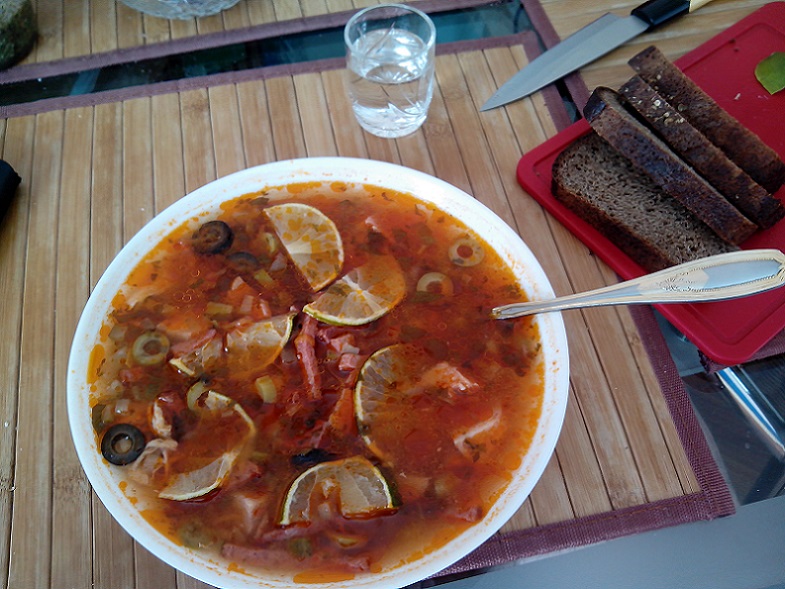 Это что за суп(борщ?) с дольками лимона и с резиновыми и металлическими прокладками???
