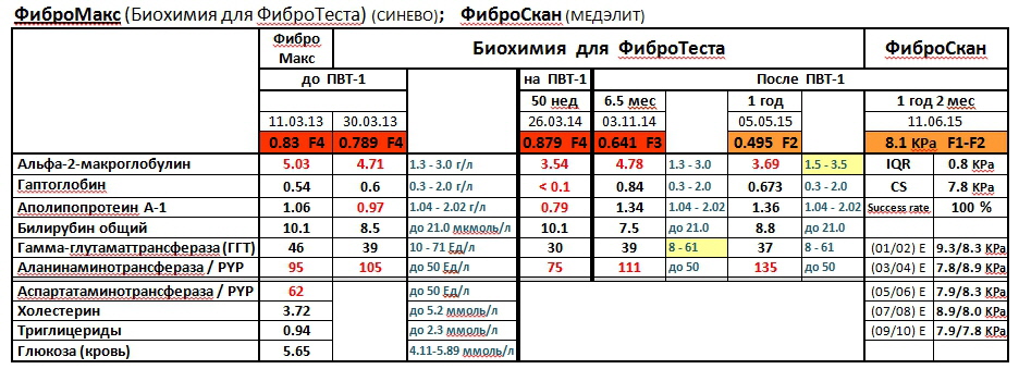 Учитывая неуверенность и сомнения в таком громадном снижении фиброза, в то время как вирус остался и разрушает печень, решил точкой отсчёта для ПВТ-2 оставить F4.