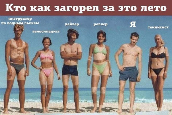 я как то в молодости спорт.штаны закатила высоко и деду в саду помогала-вечером баба ужаснулась-одна нога загорелее выше другой