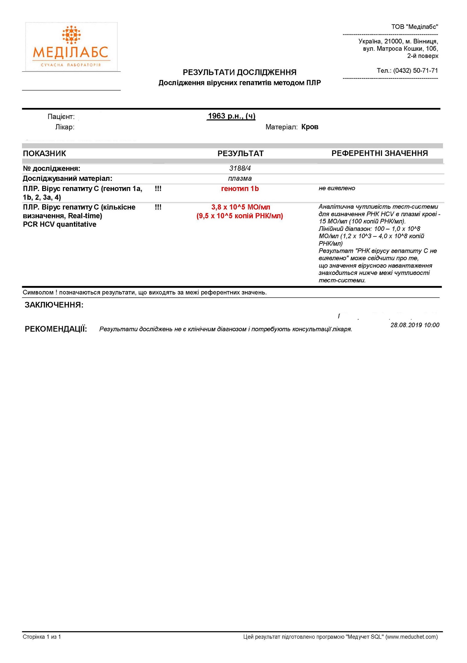 Сейчас вам надо пройти фиброскан( в Виннице есть) и сдать генотипирование в платной лаборатории( Синево, Инвитро, Дила и т.д). Специалист вам кучу ненужного навыписывает-разоритесь
