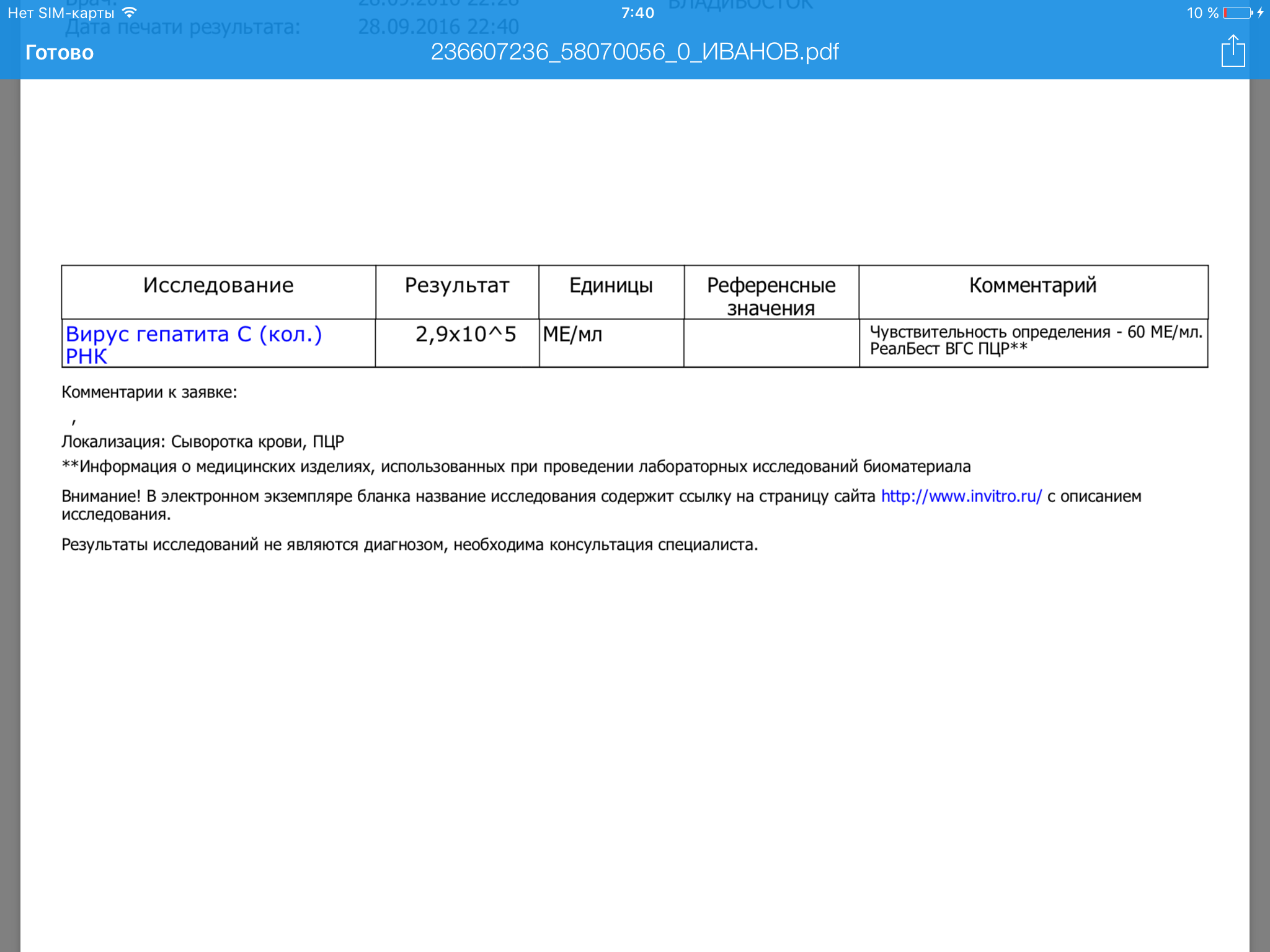Старт 5.09.16 г, Соф - Дак - Сим с 5 недели , 16 недель ПВТ , Геп С 1 в , Ф 3 (11,6) , 1 день в/н 9,1x10^6 (60 МЕ/мл Инвитро) , 3 н, в/н 1,9 х10^2 (60 МЕ/мл Инвитро) , 5 н. ПВТ <10 ^2 (60 МЕ/мл Инвитро количество ) 6 н. Не обнаружено ( 60 МЕ/мл качество), 7 н. Не обнаружно ( 15 МЕ/мл ультра ) , 9 н. Не обнаружено (60 МЕ/мл качество ) , 12 н. Не обнаружено ( 60 МЕ/мл качество) 16 н. Не обнаружено ( 60 МЕ/мл качество) УВО 24
