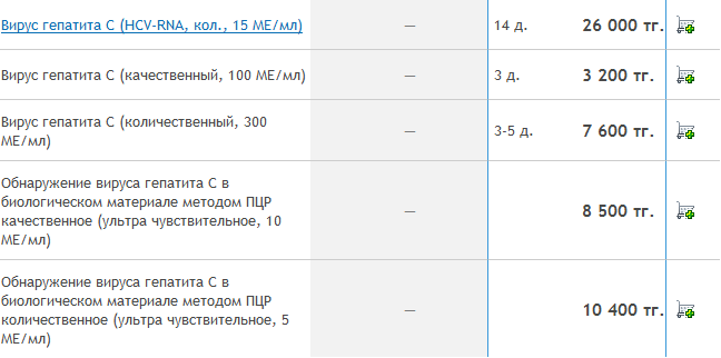 в другой лаборатории: Вирус гепатита С (HCV-RNA, кол., 15 МЕ/мл) - 3 раза дороже, но там же анализ Обнаружение вируса гепатита С в биологическом материале методом ПЦР количественное (ультра чувствительное, 5 МЕ/мл) - 2 раза дешевле.