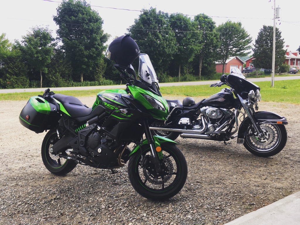 У нас другие пейзажи ))) катался в субботу с товарищем (он на Харлее) по проселочным дорогам, остановились у одного сада, где сидр делают, присели охладиться и выпить прохладительные напитки местного производства. Сели на террасу, я потягиваю местную комбучу яблочную, он - сидр, солнце, кузнечики, жара перед дождём, за час две машины проехали и только мы балдеем да трындим. Это то, что за кадром, а на кадре наши кони )))