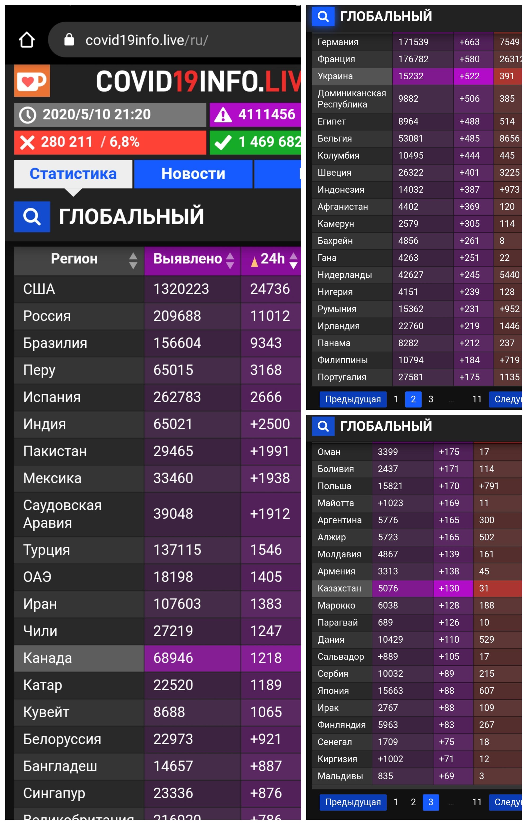 1. Очередные 95 тыс за день, США, РФ, Бразилия 45% от общего количества. Резко упал прирост Англия и Германия 2. РФ выйдет завтра на 3 место по зараженным. У нас все под "Контролем"