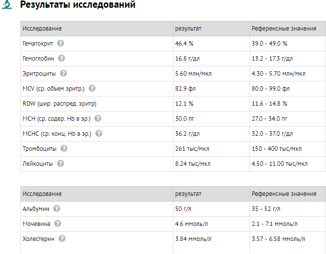 и анализы в приделах нормы