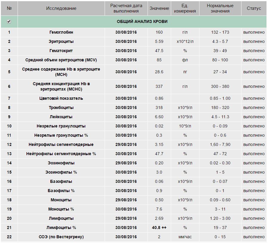 Анализы пройдены, данные установлены.
