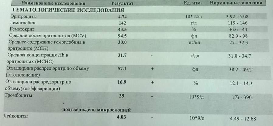 Тромбы остались такими же низкими! Следите за нагрузками - поменьше тяжестей поднимать, побольше отдыхать!