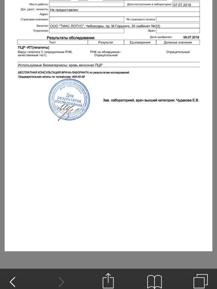 - Гепатит: Не обнаружен