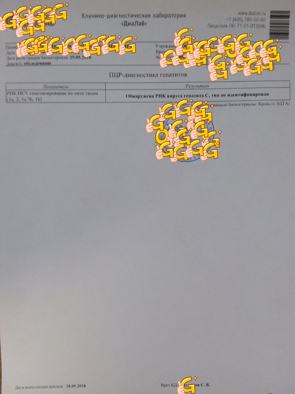 - Гепатит: Не обнаружен