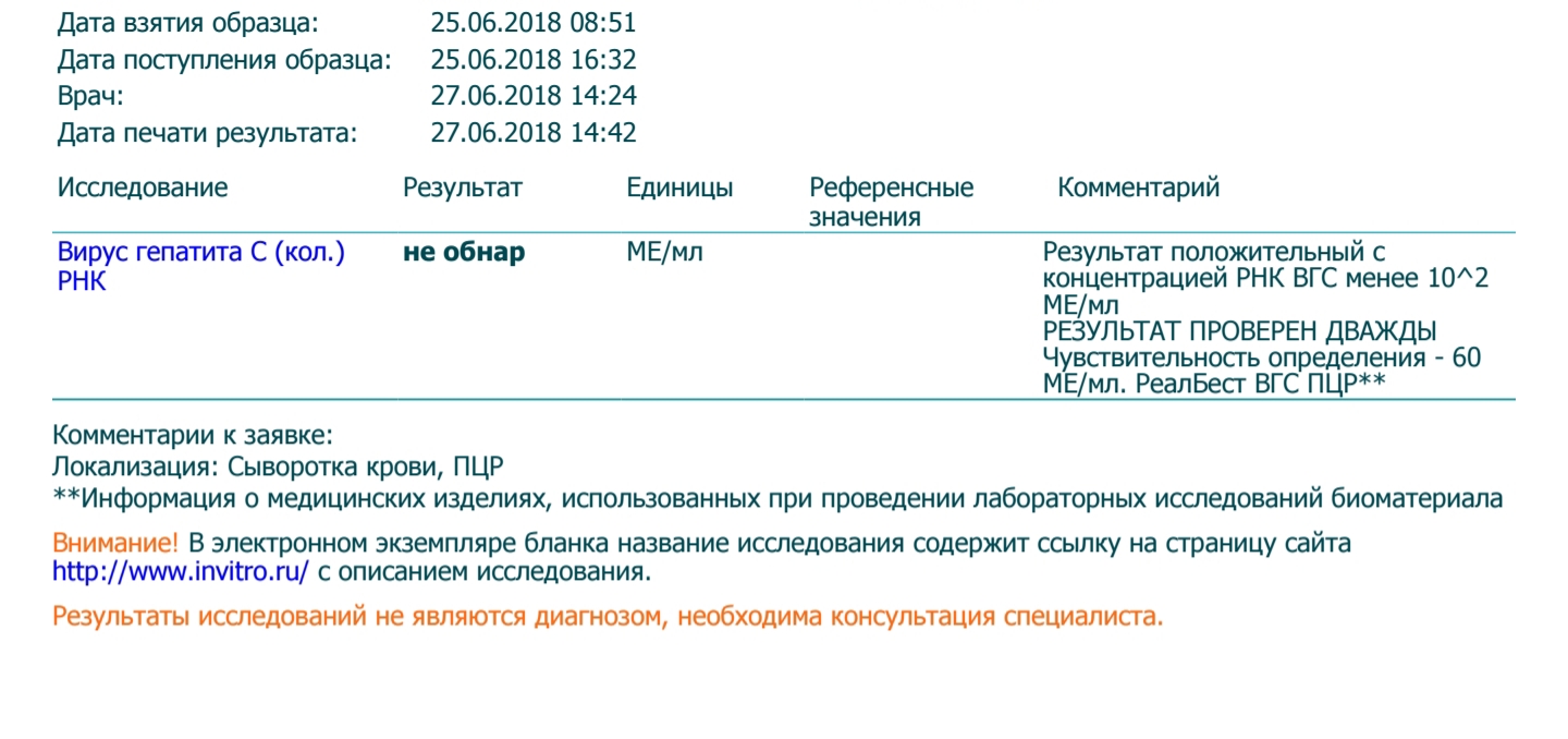 P.S. Не пойму, как соотнести результат анализа и комментарий. Типа вирус обнаруживается на границе чувствительности?