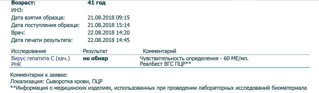 Гепатит С ген2,вирусная нагрузка 1.1х10^6 me, фиброз F0.
