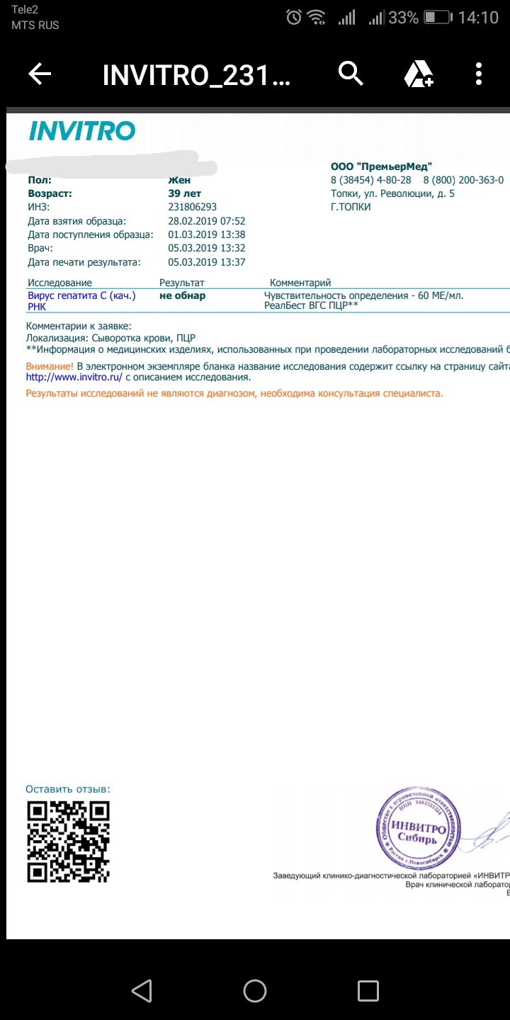 - Гепатит: С ушел в минус