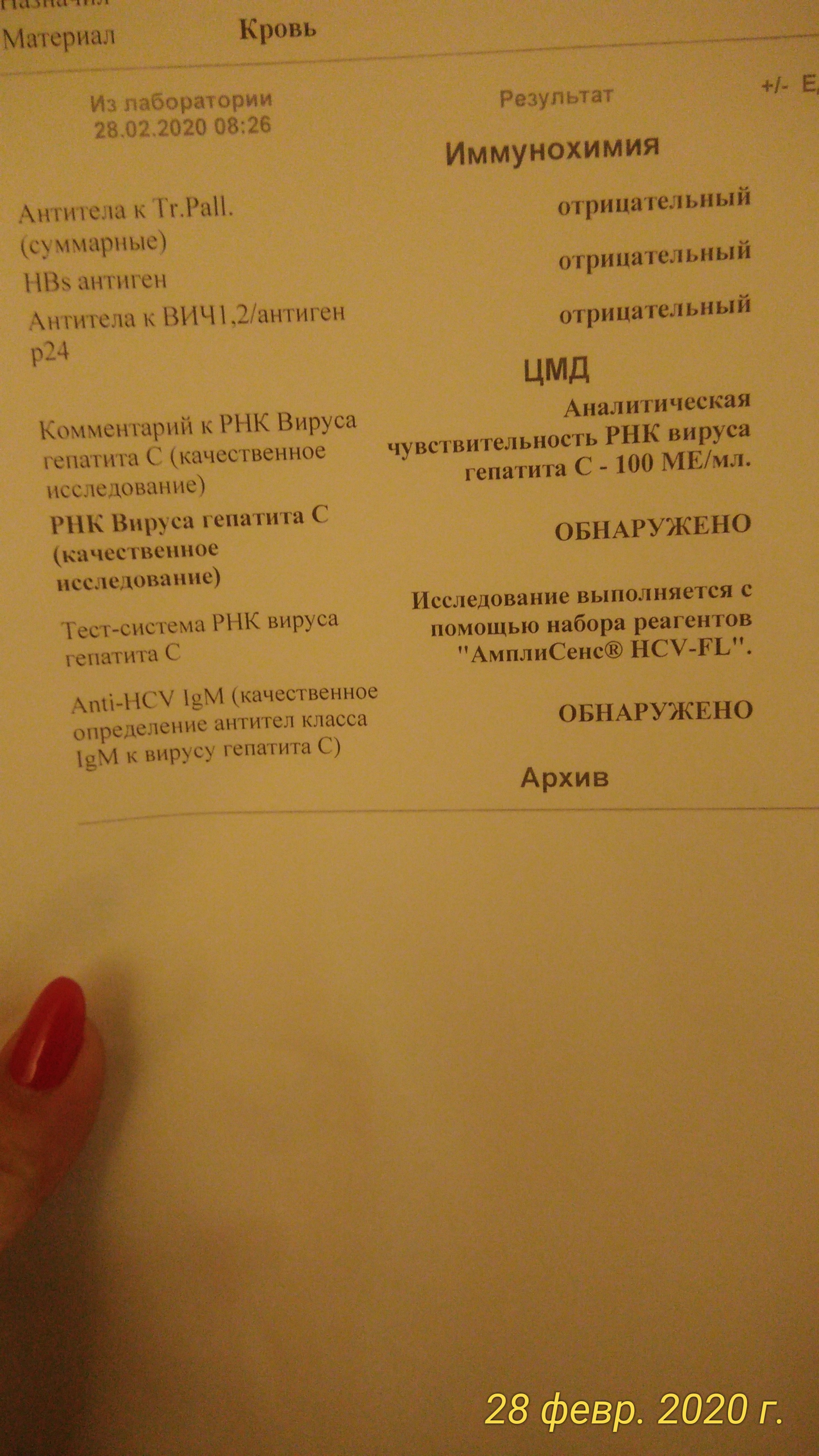 Savskia, Таки да, гепатит С, и никуда он не ушел как вы писали на стр.1.