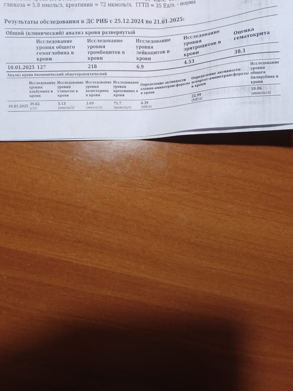 Анализ 16.02 АЛТ-14,АСТ-20,ГГТ-14,БИЛ-12,9,ТРОМБ-229 и минус (49 ме/мл HELIX)