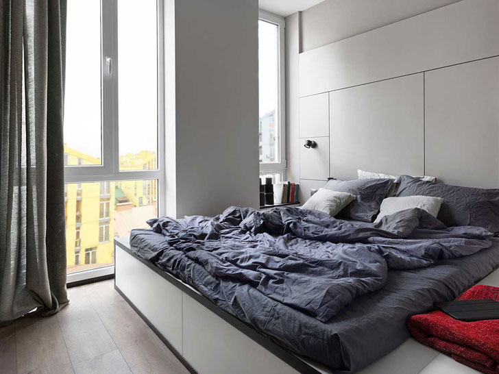 Или же вообще сделал трансформера, шкаф-кровать или подиуимный вариант кровати - дням гостинная большая, ночью спальня.