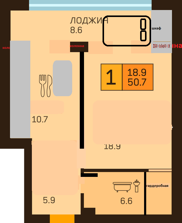 Вообще, Рыбка, 50 кв - это приличное пространство. Моя первая квартира была 40 кв, кухня была на балконе, сама кухня переделана еще в одну комнату, зал был и гоcтинной и спальней(спала на диване-кровати), ванна объединена с туалетом, и еще прихожка была приличная с гардеробным шкафом. 2 человека жили норм.