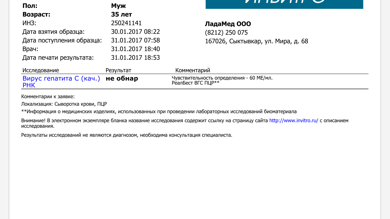 - Гепатит: С ушел в минус