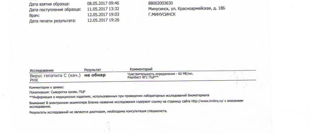ГепС, генотип 1, ф-0 (5,8), в/н 1,0*10^7МЕ/мл от 16.02.2017г.