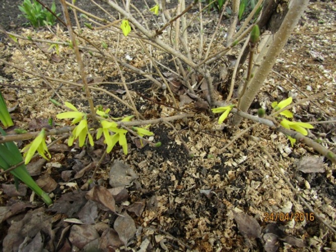 Я тоже думаю - форзиция. На Урале три вида форзиций выживают. Теперь у меня их два, давно есть два кустика с мелкими цветками, но там такая мерзляка, каждый год половина веток вымерзает. А тут такая мощь зацветает. Радует кустик, не все так грустно в жизни! Я спрашивала про свой клематис, мне повторили все то , что вы мне тут написали и ...пожали плечами. Ну и ладно, растет, цветет и ладно!