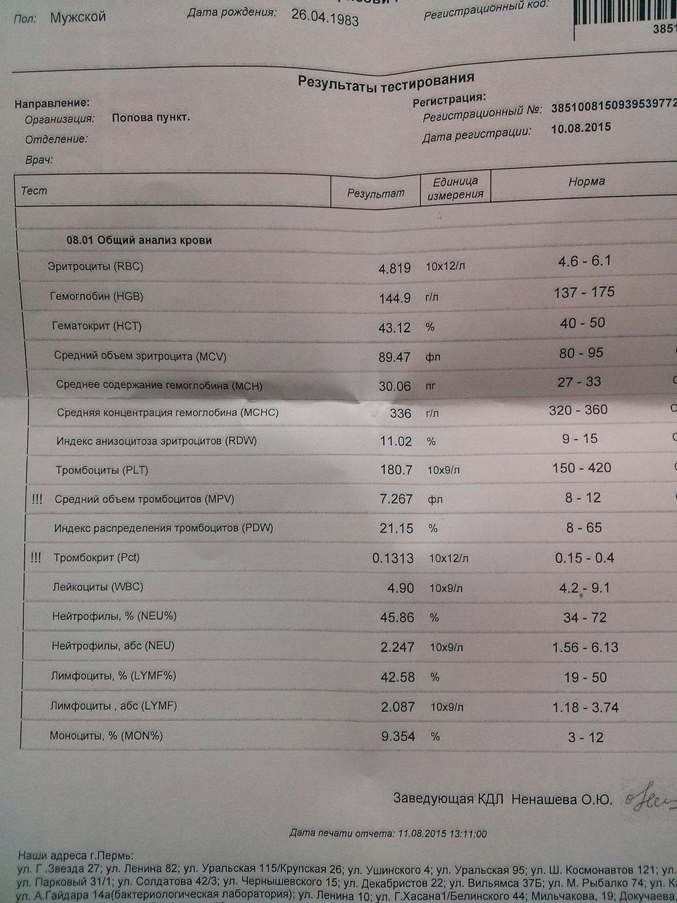 Сегодня получил результат ОАК. Тромбы немного упали. Если кто знает напишите, надо их поднимать, или нет.